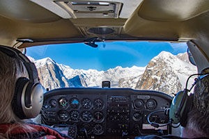 Flying up the Great Gorge of the Ruth Glacier on Denali |
