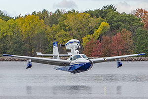 Flying a hull seaplane (flying boat), the Lake Buccaneer.